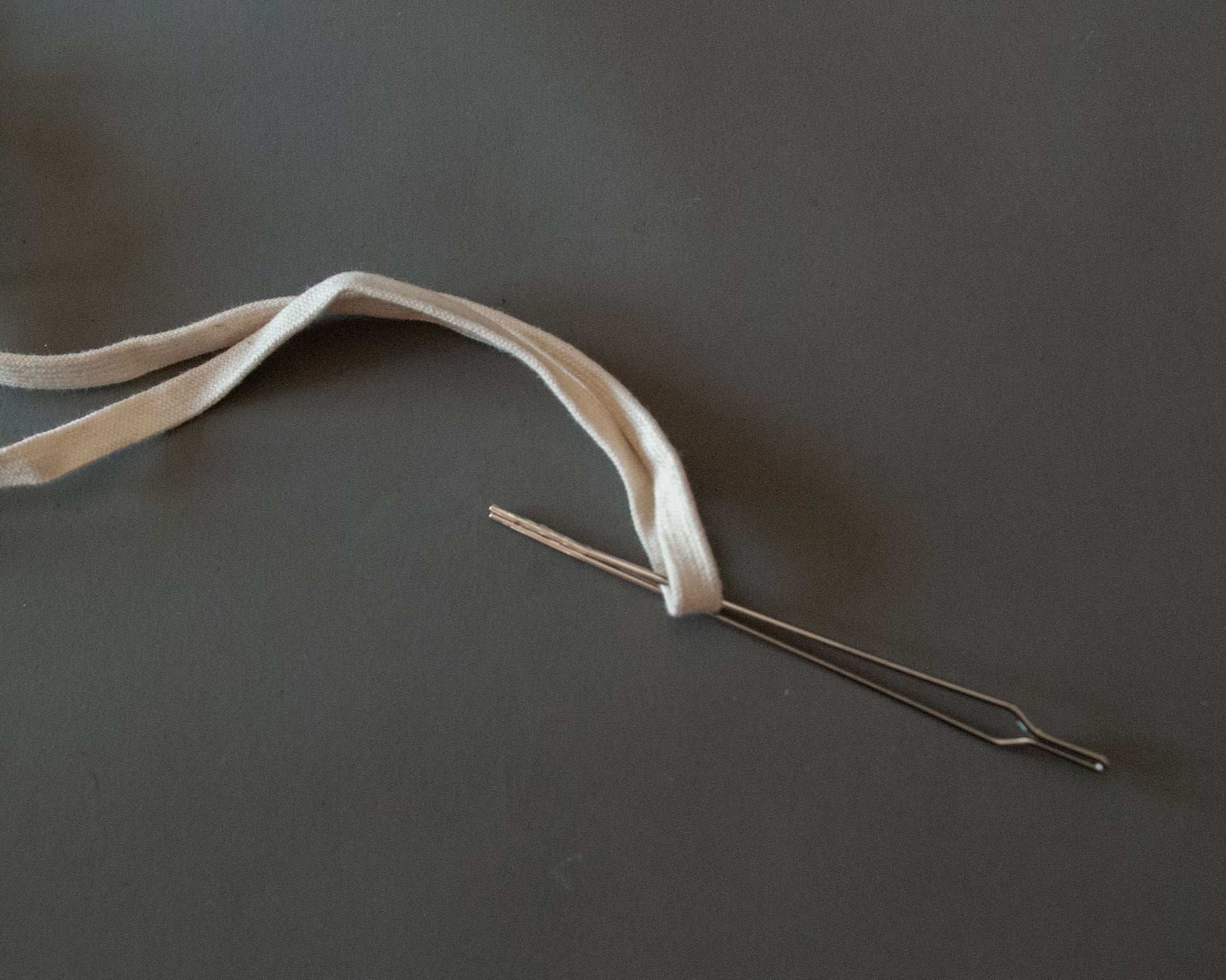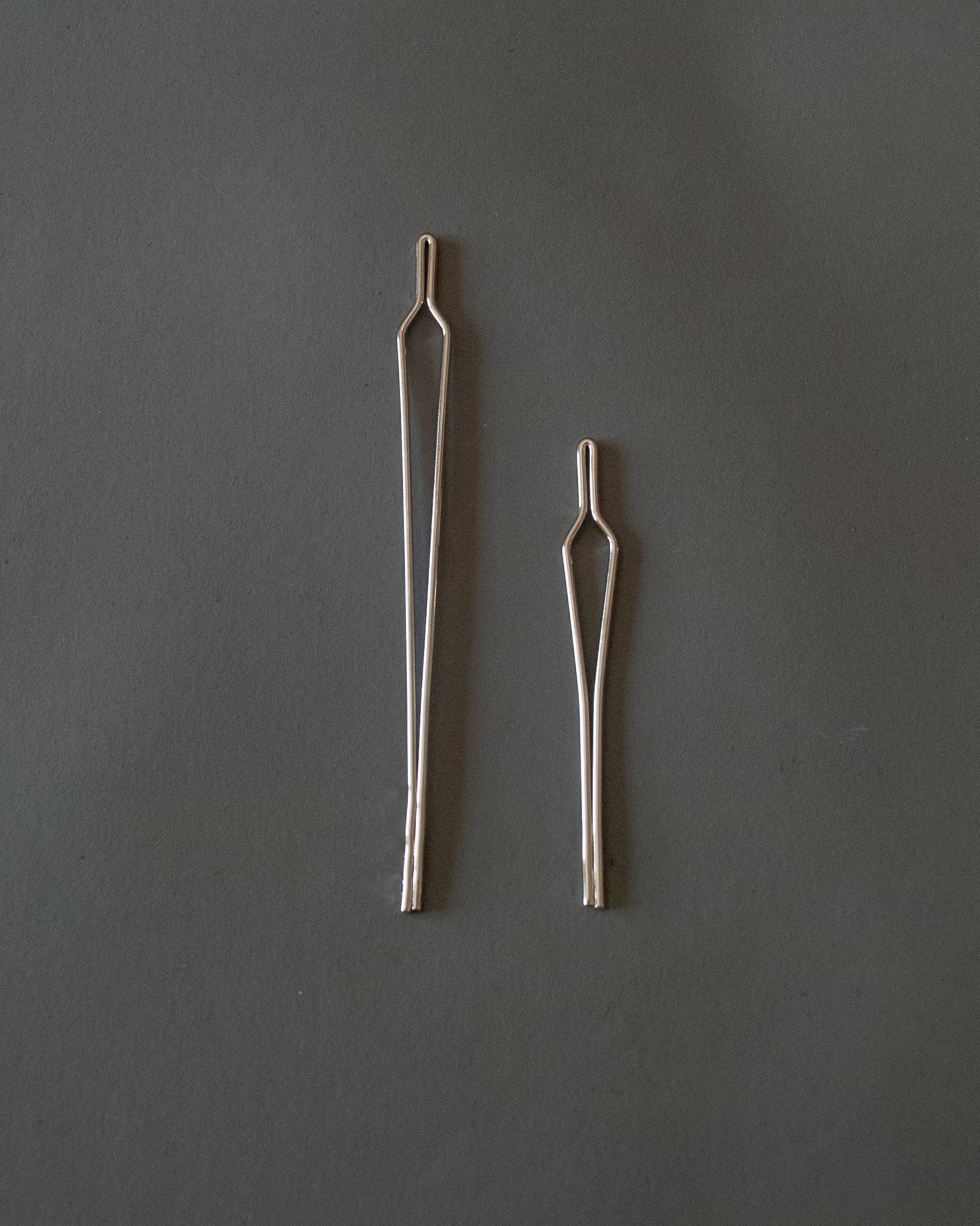 Used to thread elastics very easily, even through narrow channels. The bodkin is post tensioned like a bobby pin, and it's sturdy members allow the elastics or cords to naturally stay held whilst threading, and avoids damaging their ends. Available in 2 sizes (12cm and 8cm).